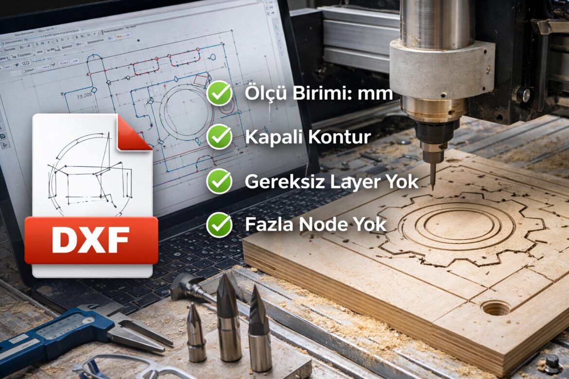 CNC kesim ve oyma işlemlerinde hatasız sonuç almak için DXF dosyasının doğru hazırlanması şarttır. Çoğu CNC problemi makineden değil, hatalı çizilmiş DXF dosyasından kaynaklanır.