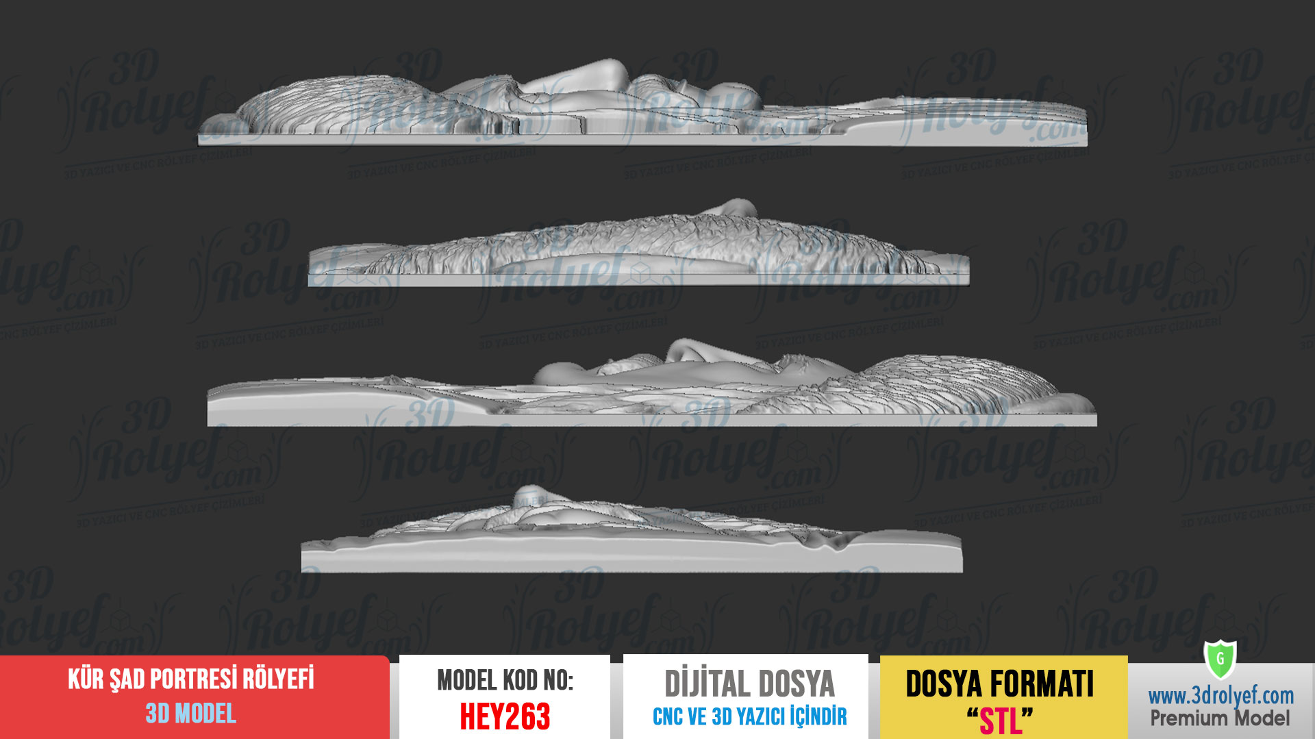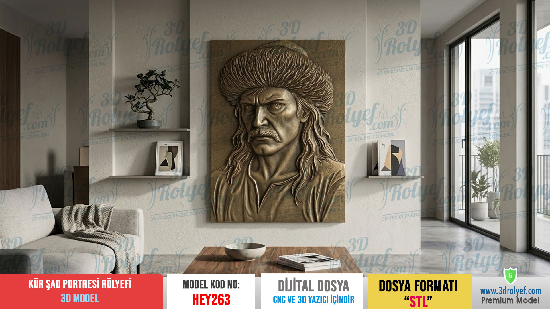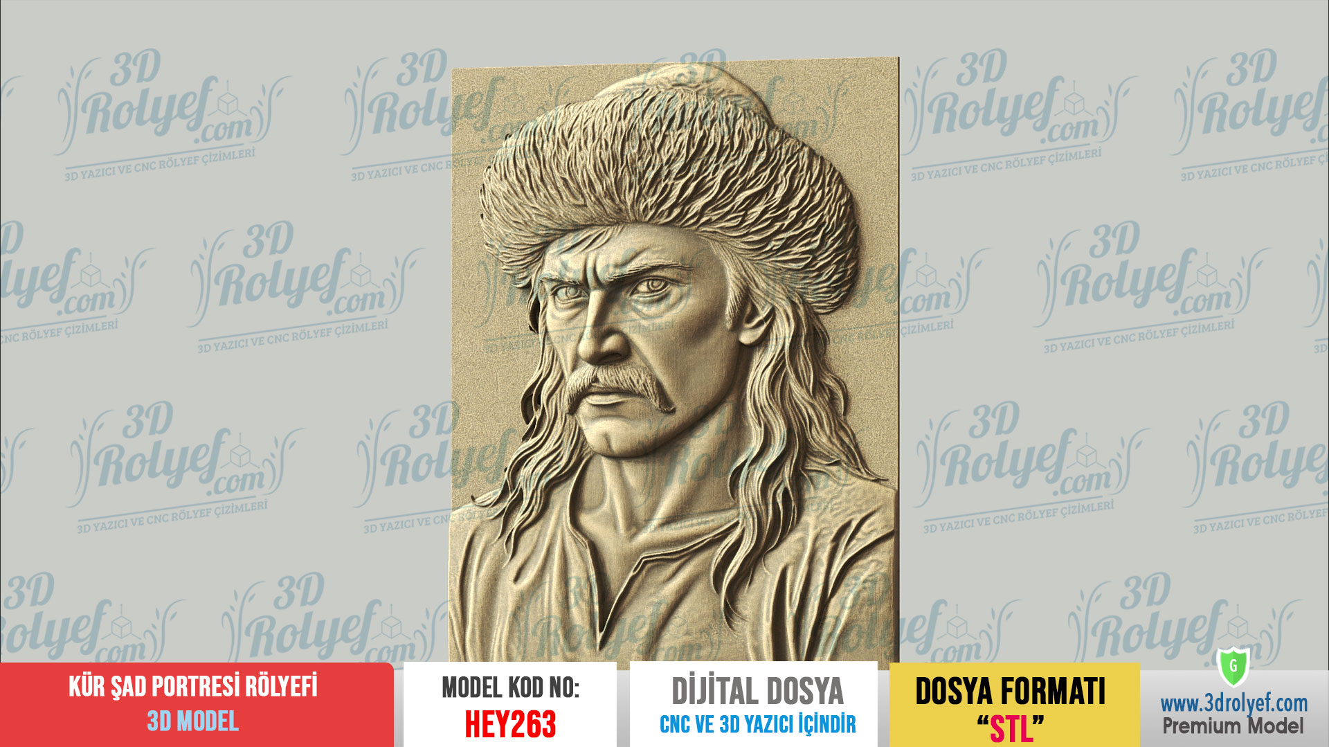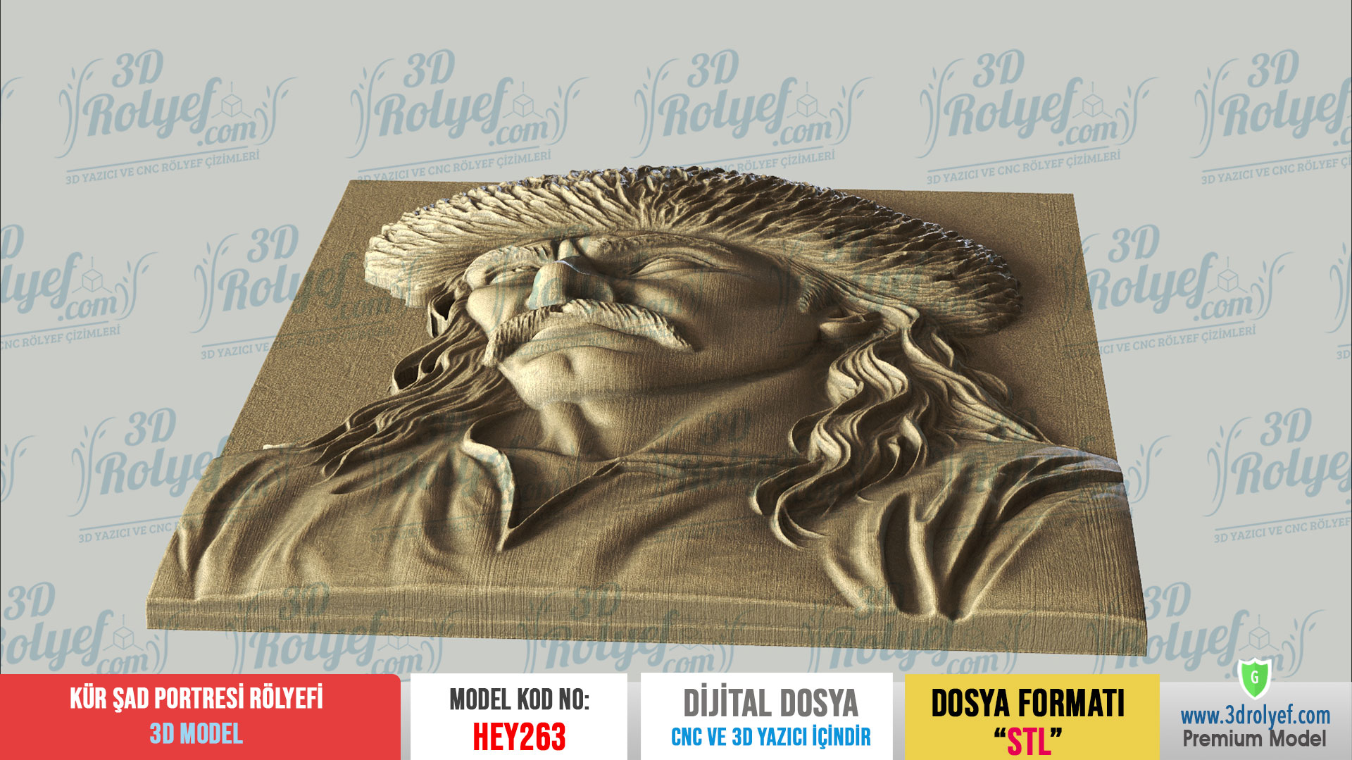 Destansı Bir Kahramanlık Mekanlarınızda Hayat Bulsun, Kürşad Portresi Rölyefi, Türk tarihinin unutulmaz karakterlerinden biri olan Kürşad’ın kararlı ve güçlü bakışlarını yansıtır. Modelimiz, özellikle karakteristik yüz hatları ve detaylı başlık yapısı üzerinde titizlikle çalışılarak hazırlanmıştır. Üstelik bu tasarım, 3d baskı, ahşap işlemeden, mermer oymaya kadar pek çok farklı materyalde yüksek kaliteli sonuçlar verir.