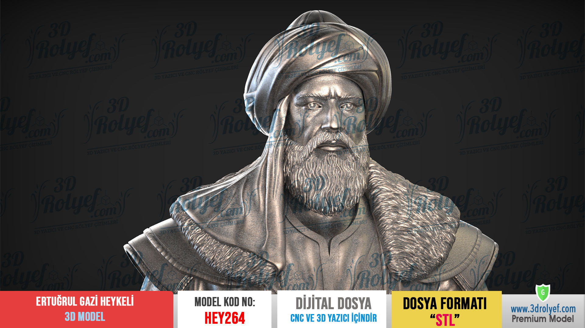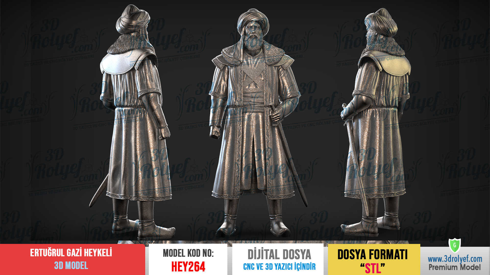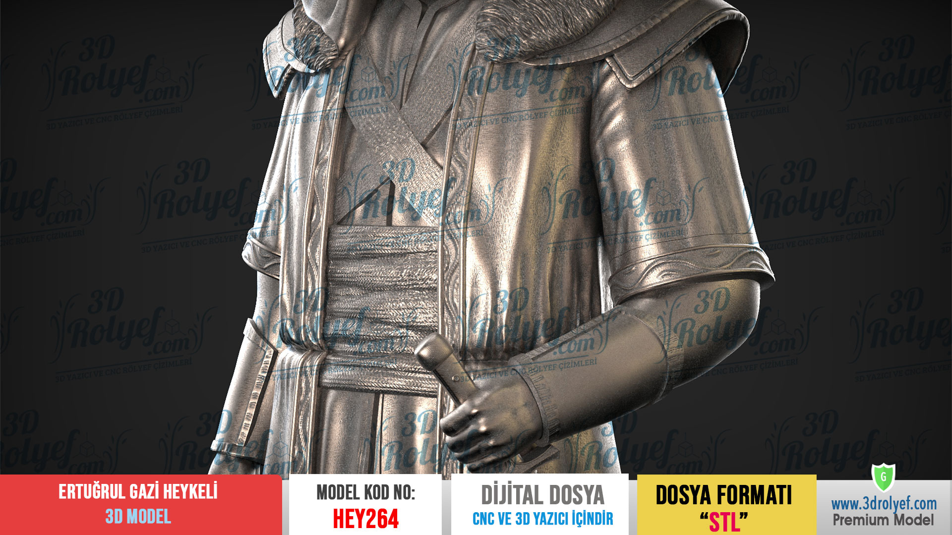 Tarihin Asaletini Tasarımlarınıza Taşıyın Ertuğrul Gazi Heykeli 3d Model Osmanlı İmparatorluğu’nun temellerini atan büyük liderin vakur duruşunu en ince ayrıntısına kadar yansıtır. Modelimiz, özellikle sakal detayları, sarık kıvrımları ve yüz hatları üzerinde titizlikle çalışılarak yüksek çözünürlükte hazırlanmıştır. Üstelik bu tasarım, hem sanatsal bir dekoratif obje hem de tarihi koleksiyonlar için eşsiz bir parça sunar.
