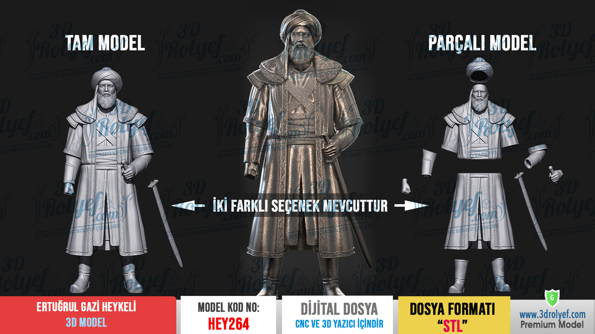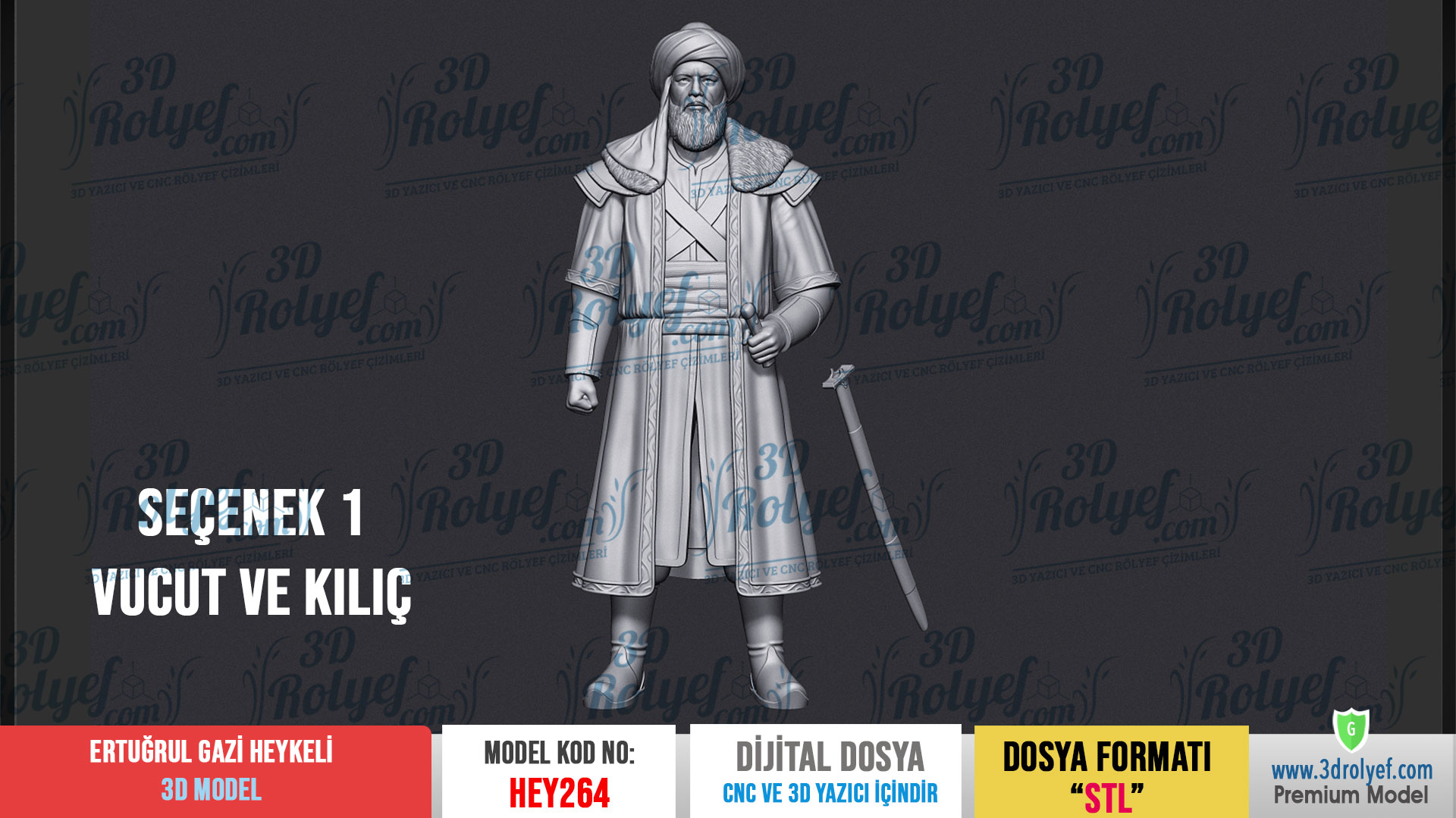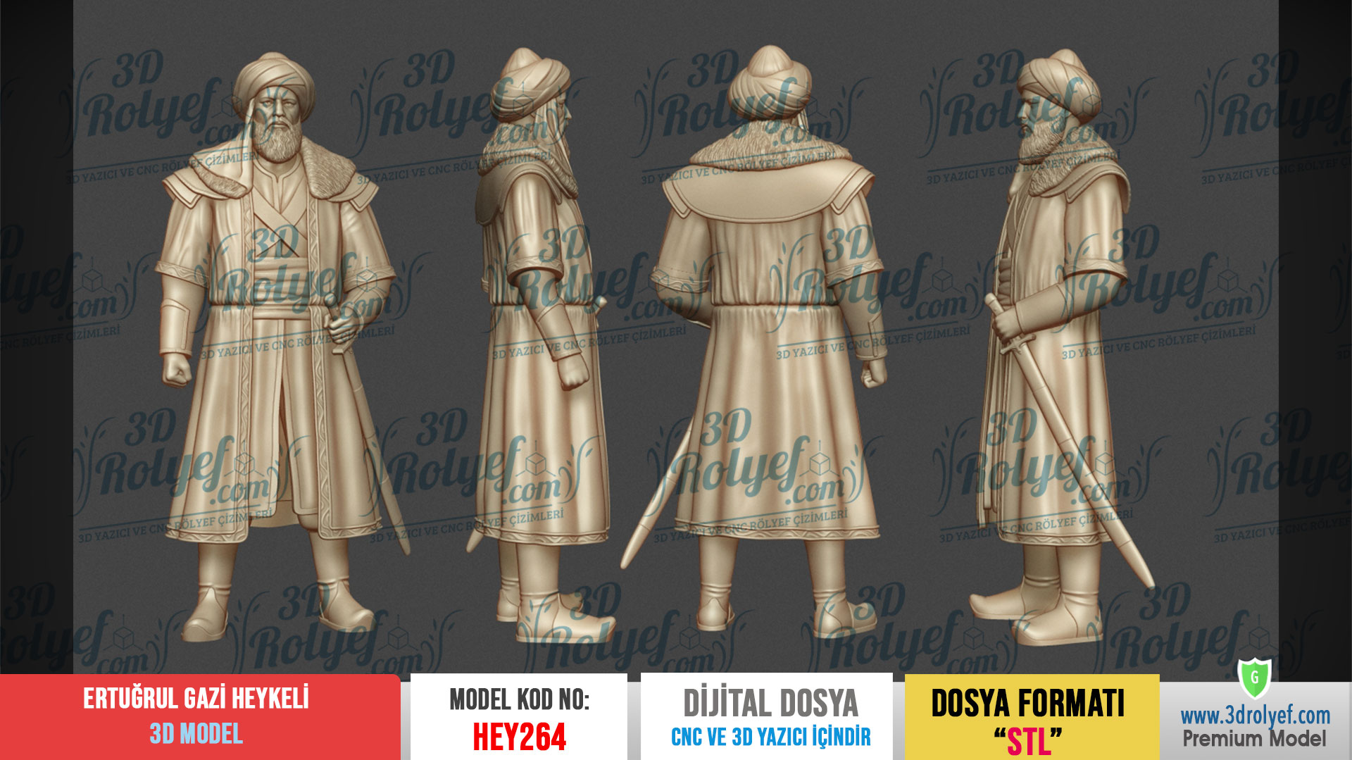 Tarihin Asaletini Tasarımlarınıza Taşıyın Ertuğrul Gazi Heykeli 3d Model Osmanlı İmparatorluğu’nun temellerini atan büyük liderin vakur duruşunu en ince ayrıntısına kadar yansıtır. Modelimiz, özellikle sakal detayları, sarık kıvrımları ve yüz hatları üzerinde titizlikle çalışılarak yüksek çözünürlükte hazırlanmıştır. Üstelik bu tasarım, hem sanatsal bir dekoratif obje hem de tarihi koleksiyonlar için eşsiz bir parça sunar.