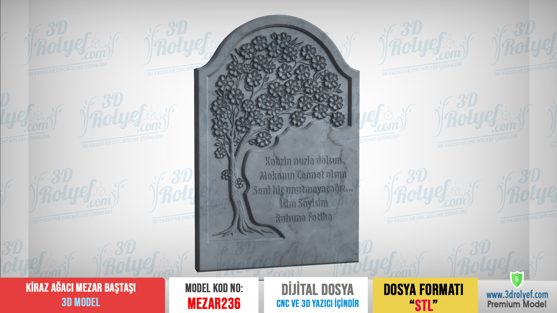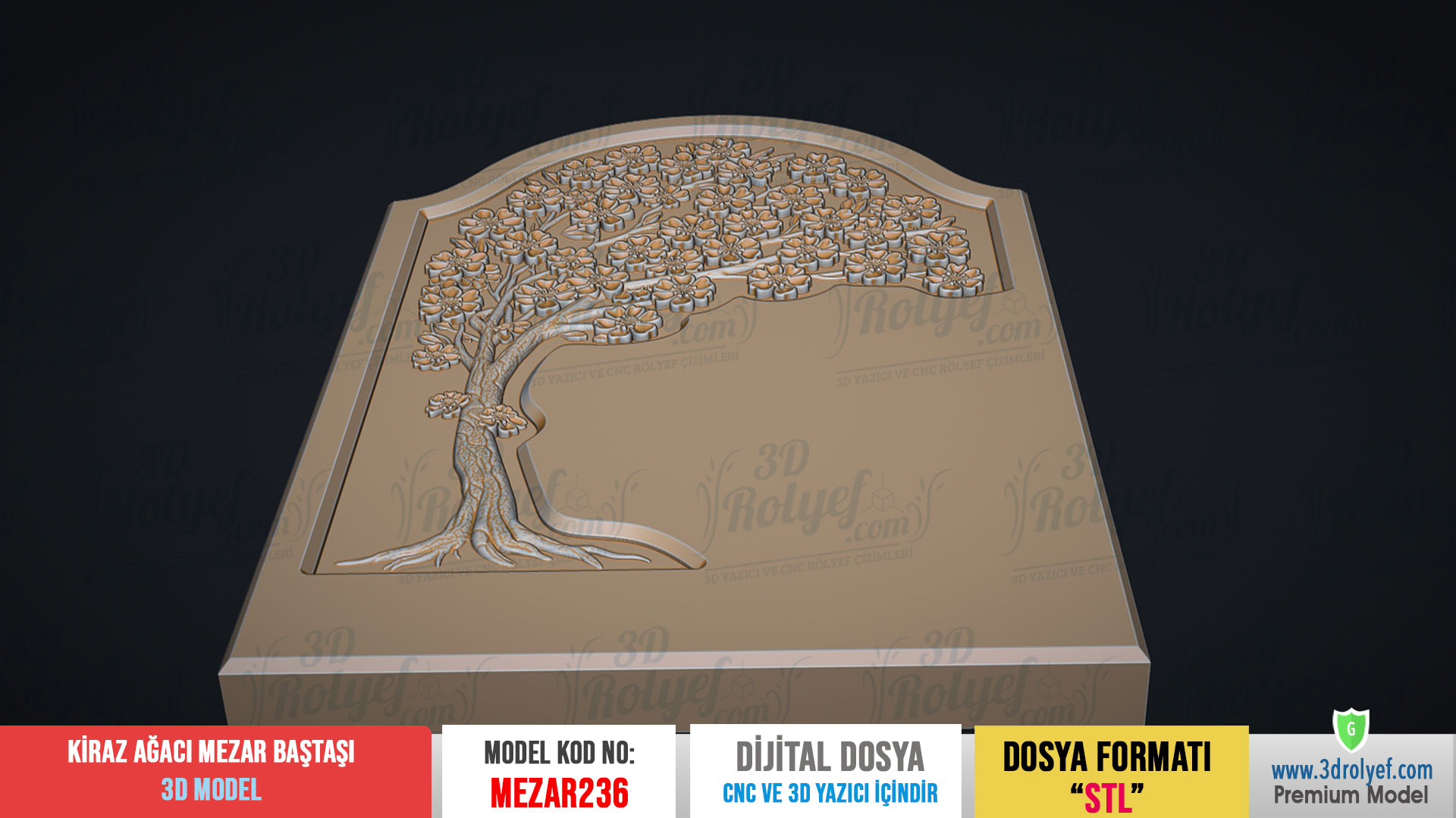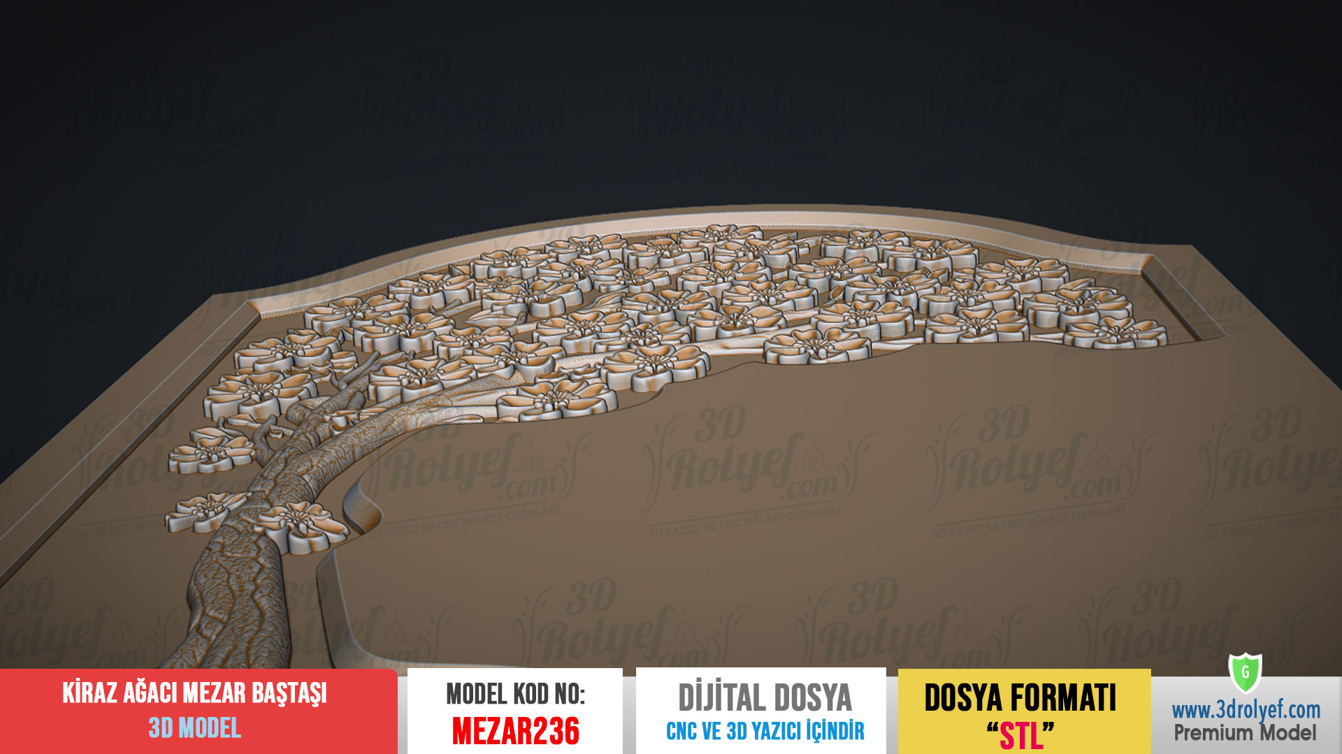 -DİKKAT! Kiraz Çiçeği Figürlü Mezar Baştaşı 3D Modeli, cnc imalatı için çizilmiş 3d bilgisayar çizimidir. (STL). Mermer veya plastik malzeme DEĞİLDİR.